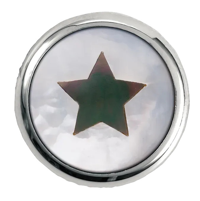 - fehér gyöngyház alakú kupakkal és fülkagyló csillag berakással
