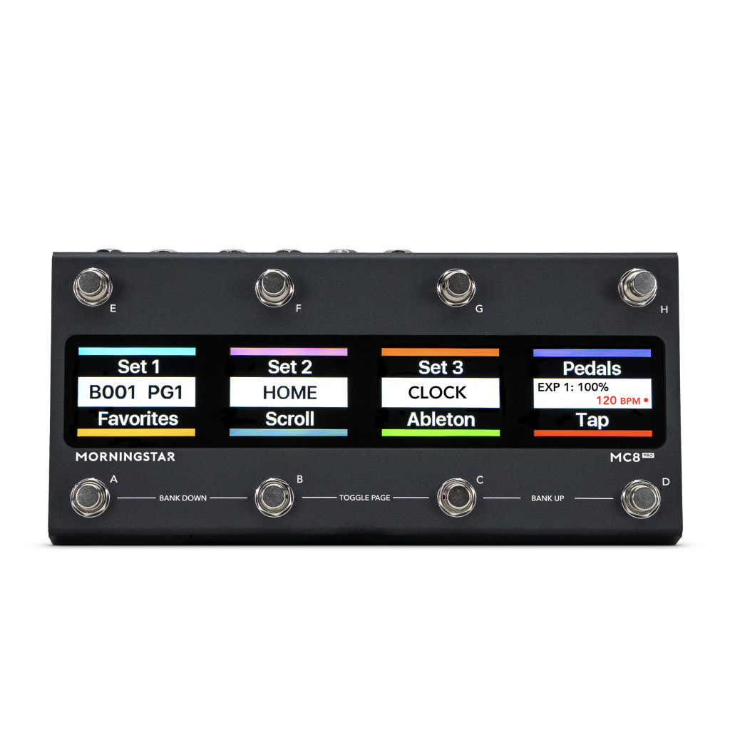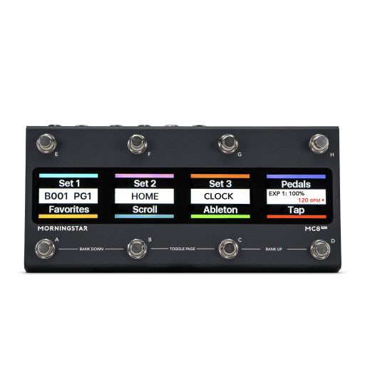 A Morningstar MC8 PRO a Morningstar kínálatának egyik csúcskategóriás MIDI vezérlője, amelyet kifejezetten összetett, professzionális setupokhoz terveztek. Ez a modell azoknak a zenészeknek készült, akik nem szeretnének kompromisszumot kötni sem vezérlésben, sem átláthatóságban: több eszköz, több preset, gyorsabb reakció és teljes kontroll egyetlen központi egységből.