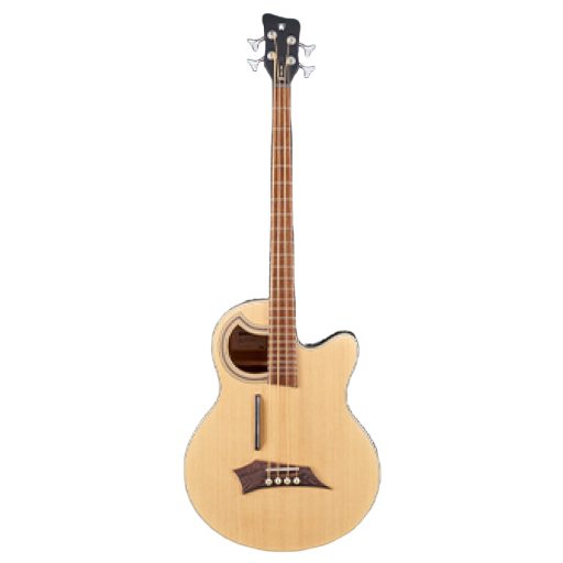 A Warwick RockBass Alien Standard 4-húros akusztikus basszusgitár a profi és haladó játékosok számára készült, ötvözve a gazdag, kiegyensúlyozott hangzást a kényelmes, gyors játékélménnyel. A tömör lucfenyő fedlap meleg, rezonáns tónust biztosít, míg a laminált agathis hát- és oldallapok tiszta, artikulált hangzást adnak minden tartományban. A mahagóni nyak és wenge fogólap sima, precíz bundváltásokat kínál, a set-neck konstrukció pedig stabil intonációt és kényelmet nyújt hosszabb játék során is.